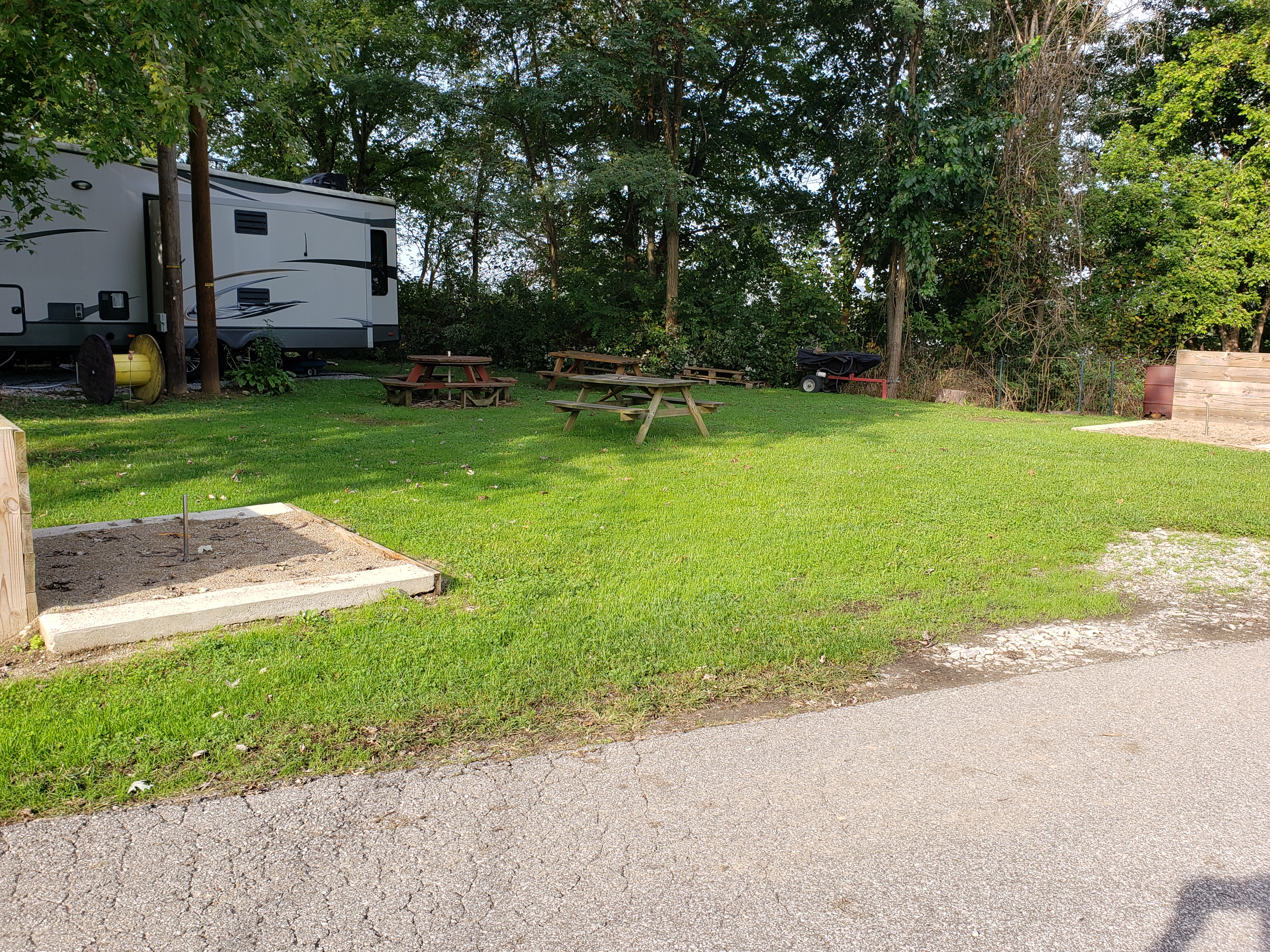 Horseshoes, picnic tables and lots of green grass for Cappy!