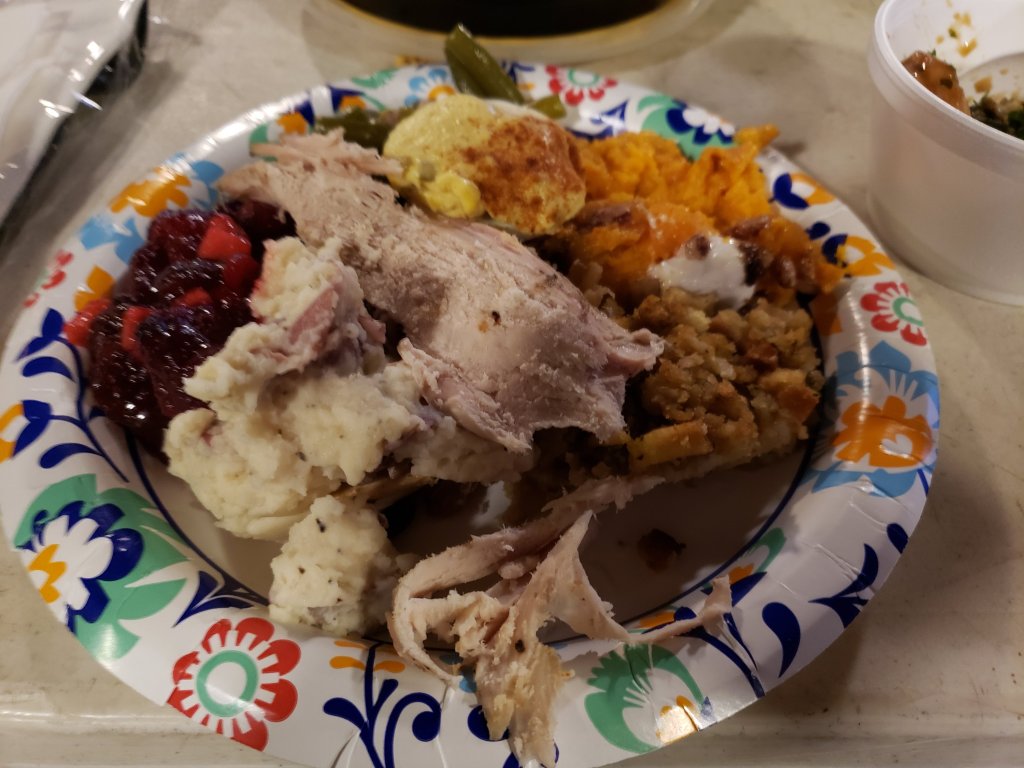 The restaurant provided two big smoked turkeys. Attendees brought all of the sides and dessert. We ate in a barn where they have live music several days a week. I brought my specialties, deviled eggs and homemade cranberry sauce. One of the gentlemen there lived in New Orleans for many years and he brought shrimp stew served over rice. We had plenty to eat and no one left hungry.