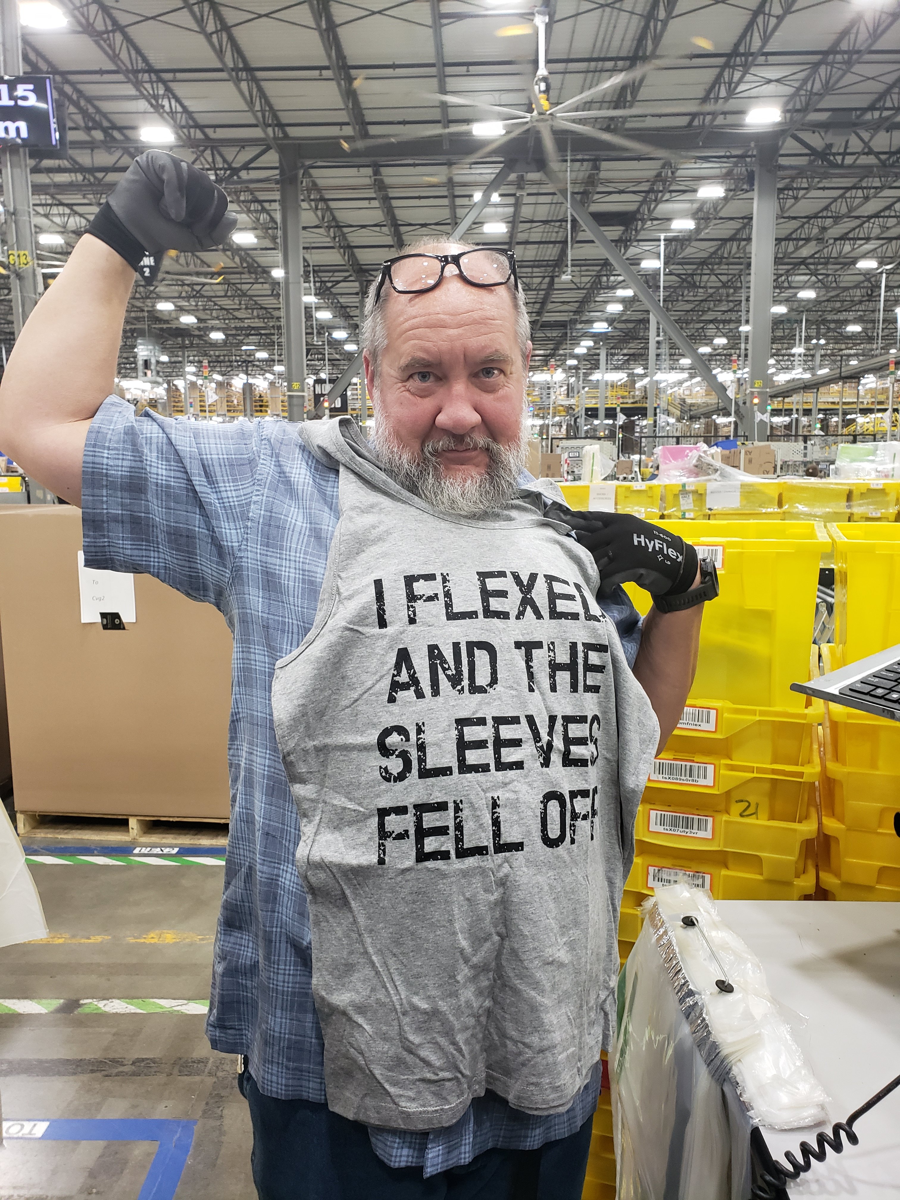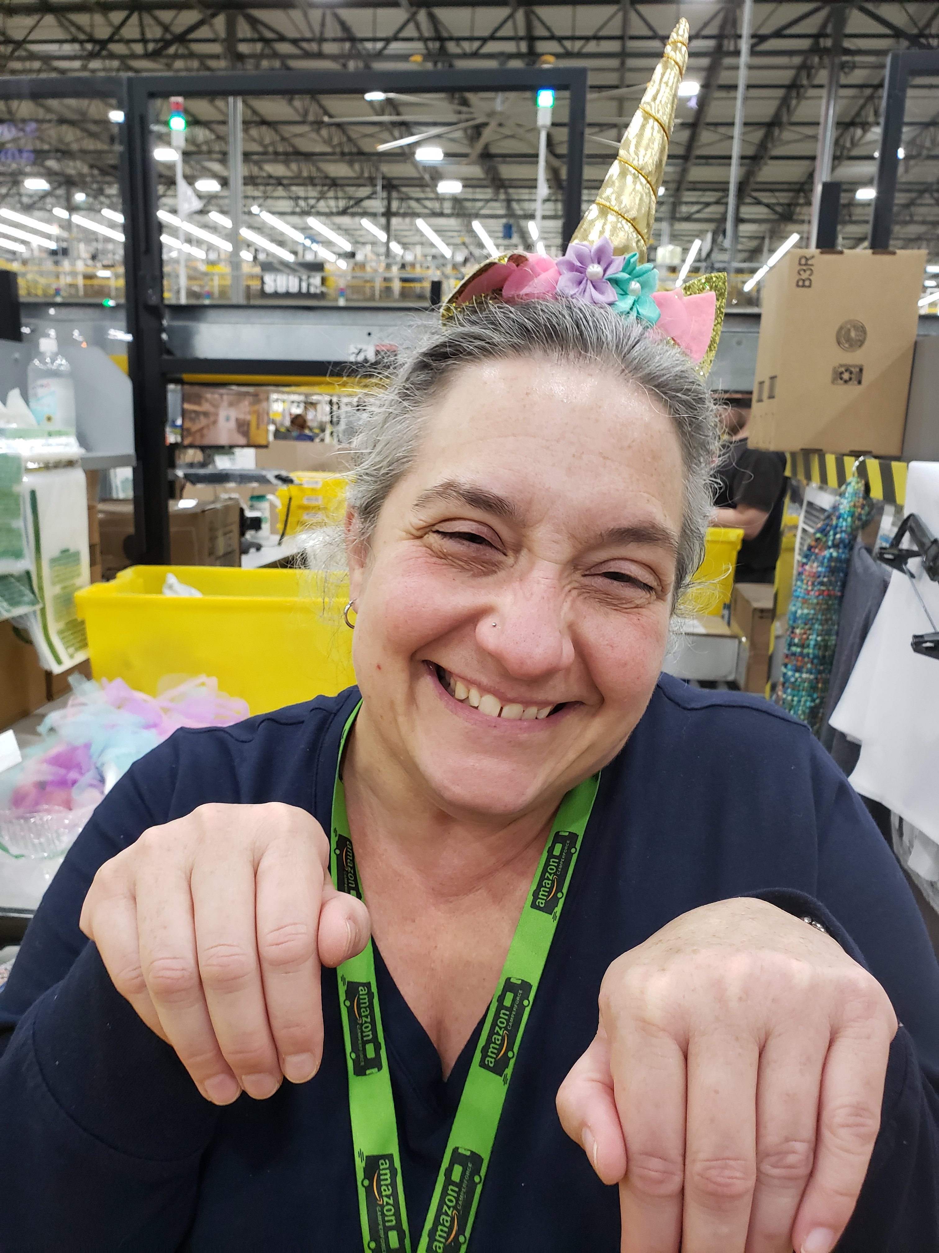The number of languages being spoken at any time in the breakroom is mind-boggling. I saw displays throught the facility celebrating Pride, transgender awareness, multiple holidays of every faith & religion, military veterans, and much more. Amazon has so many programs that engage the employees and make work fun. That is one of the things I will miss the most: laughing! In case you didn’t know, I am a joker. I love to laugh. I work hard, but always have a good time. The pictures below illustrate that perfectly!