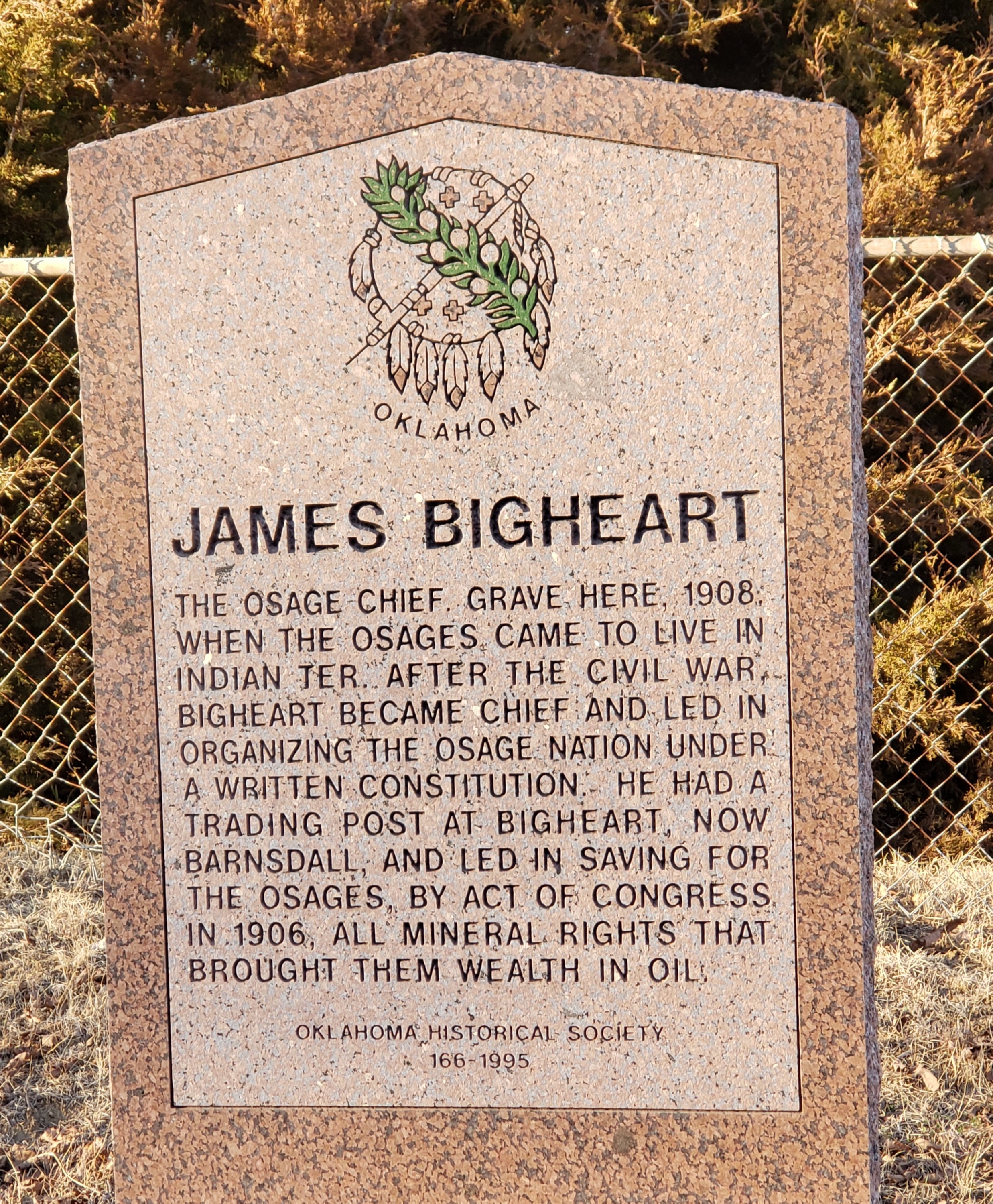 Leaving town, I spotted a highway marker paying tribute to Osage Chief James Bigheart.