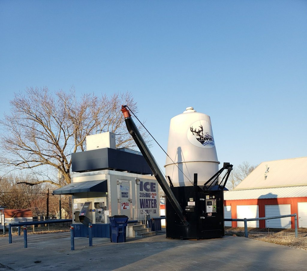 Corn Xpress, a vending machine for corn, grain and other agricultural products. If you are on Facebook, you can see the machine in action here.