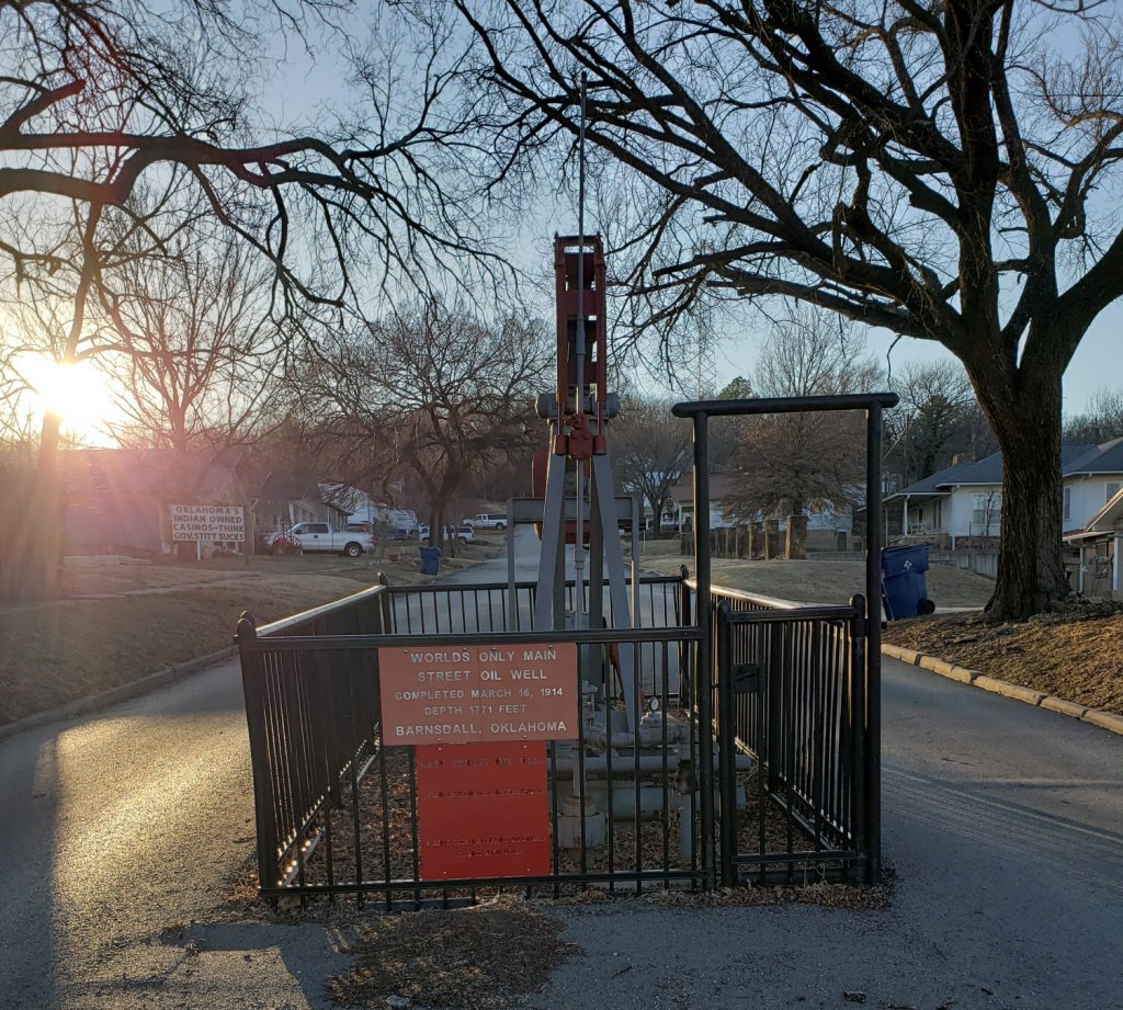 The main reason I drove into Barnsdall is that it has the world’s only Main Street oil well. It was even featured on the Ripley’s Believe It or Not program.