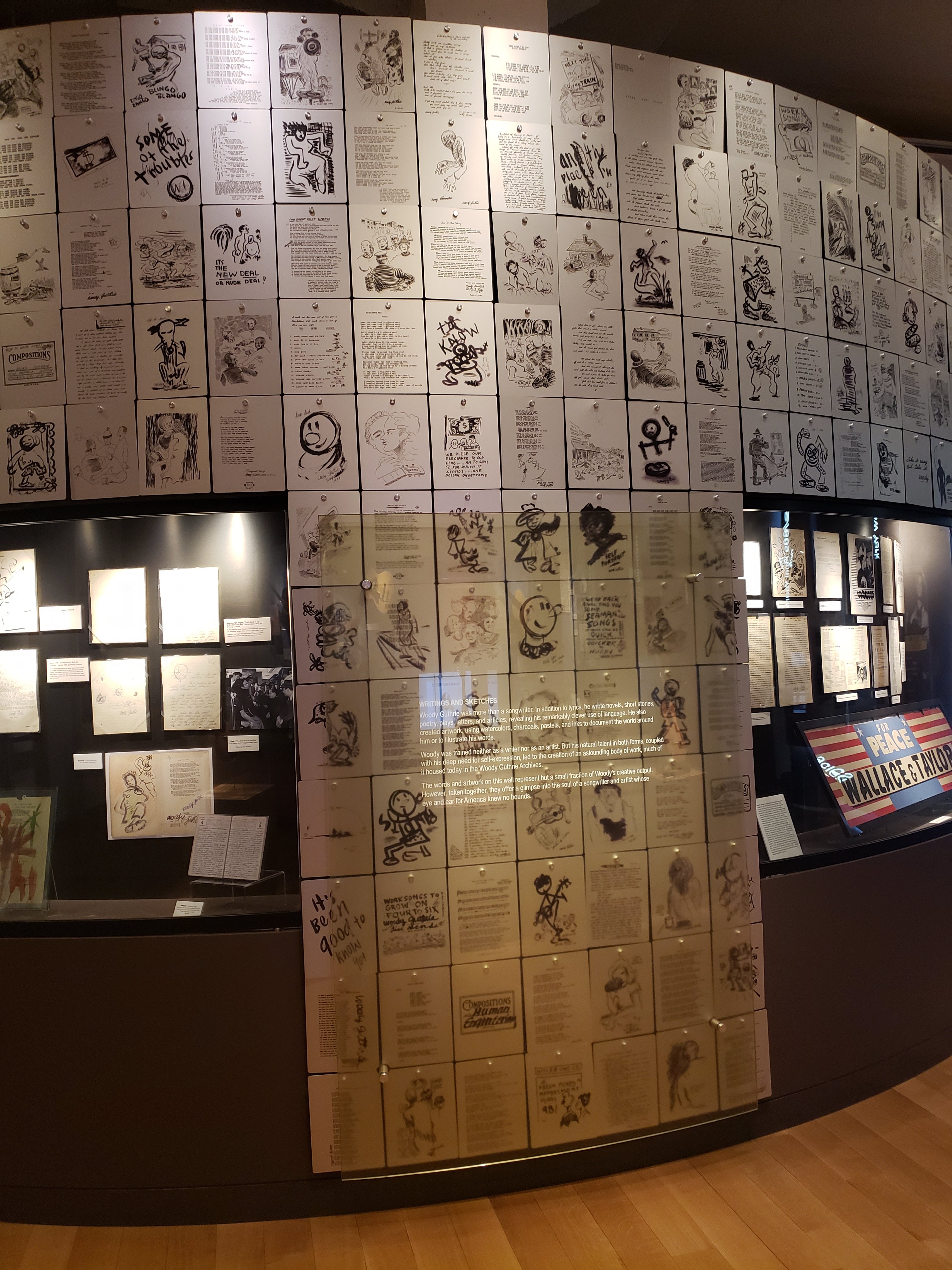 There were several sit-down stations with interactive videos & headphones chronicling Woody Guthrie’s life. Most people know Woody Guthrie for his songs; however, he was also a talented artist and author.