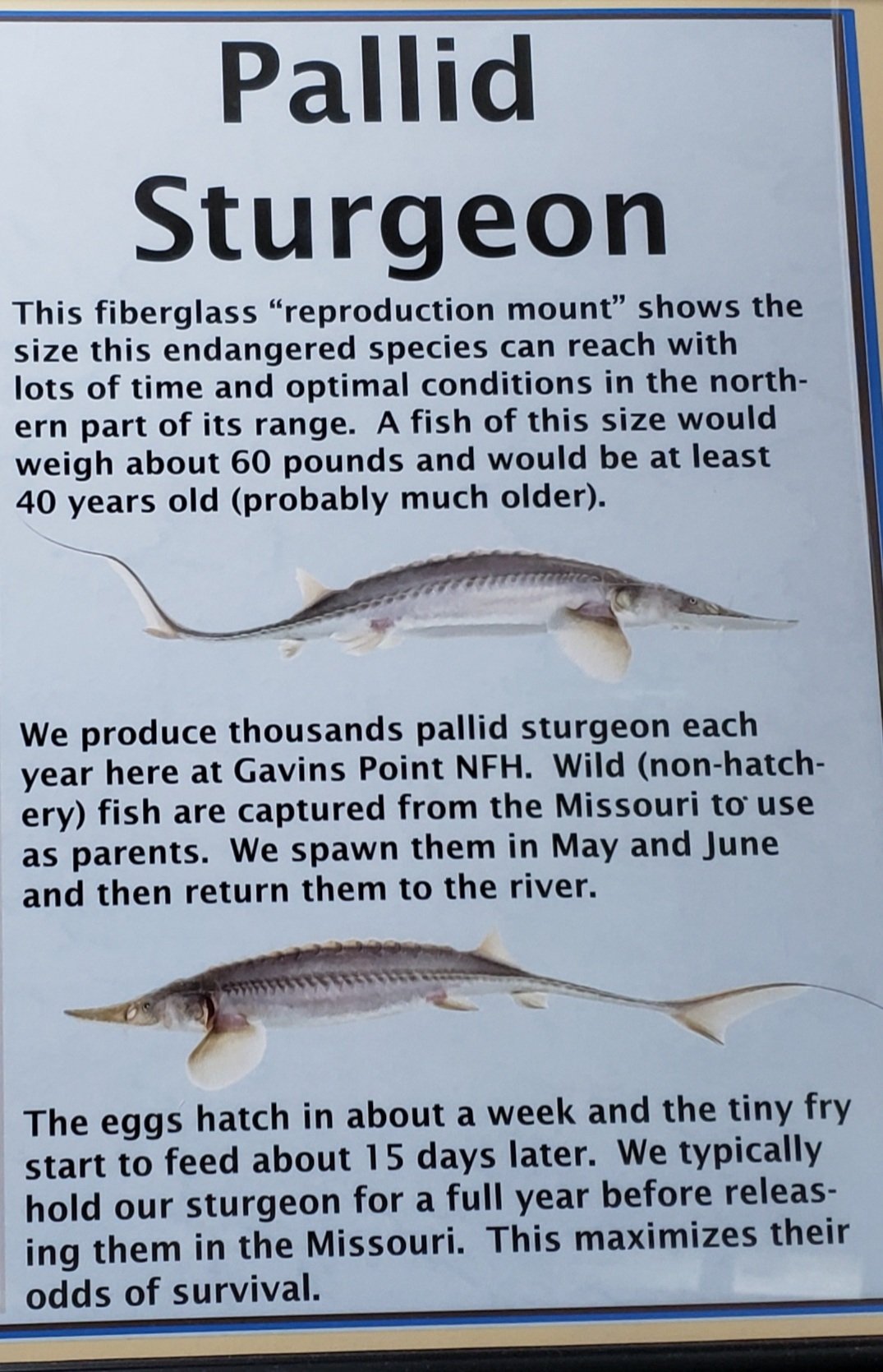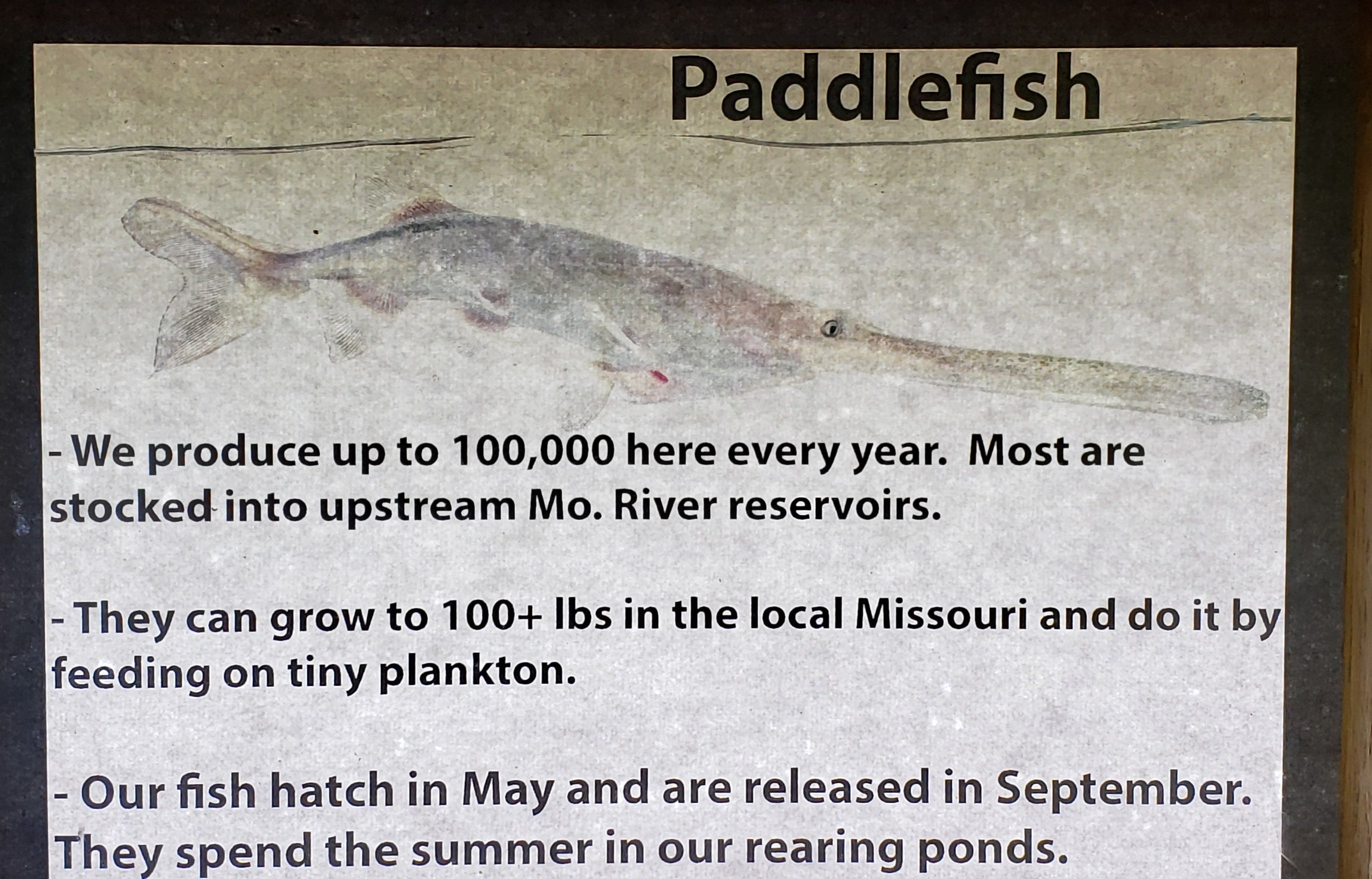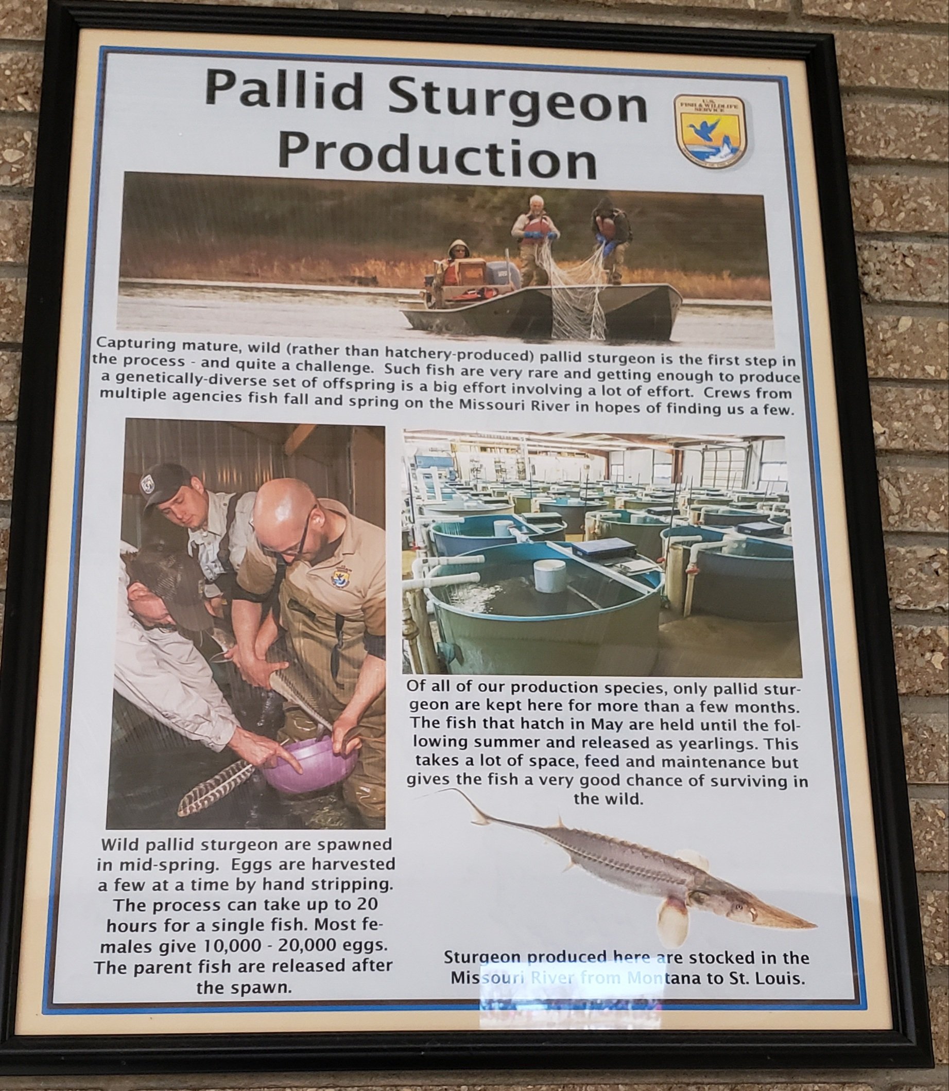 This station produces numerous species of fish. It specializes in rearing pallid sturgeon & paddlefish, two unique Missouri River native species.