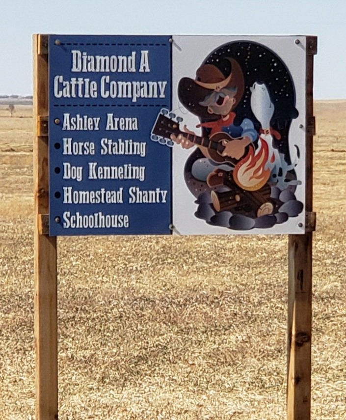 Diamond A Cattle Company was a great stay in a quiet western setting. This was another site with electricity and Crystal was a wonderful host. She drove down & filled me in on their location in Pukwana, South Dakota.