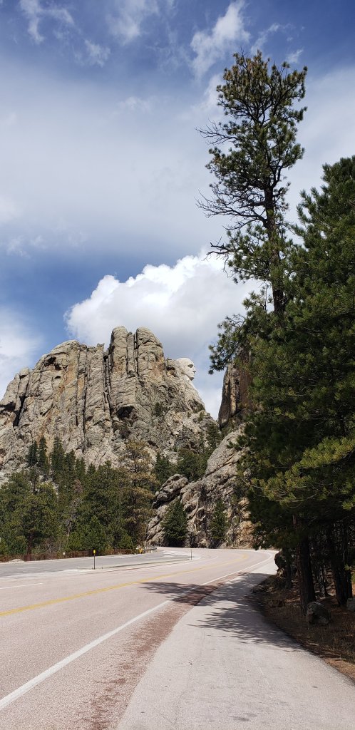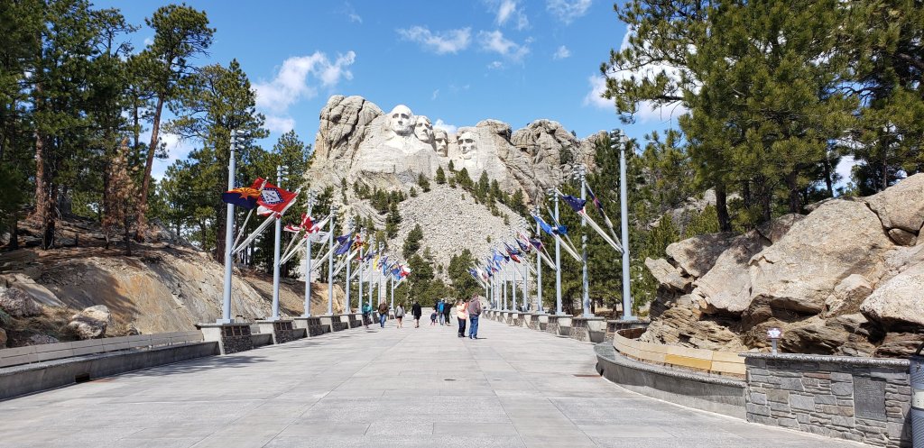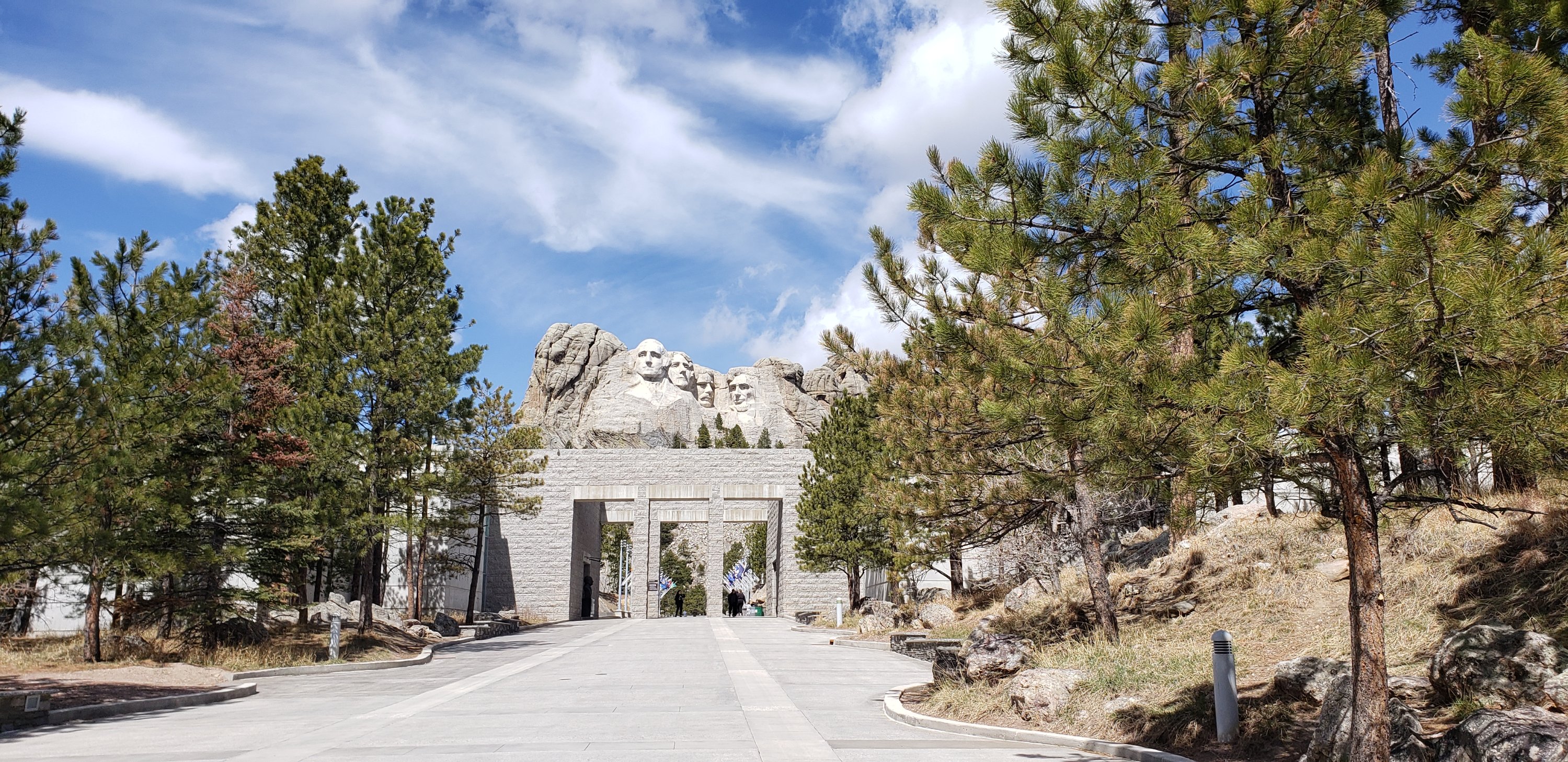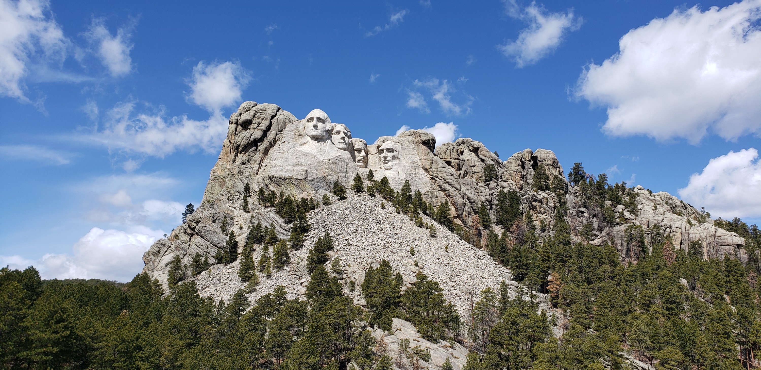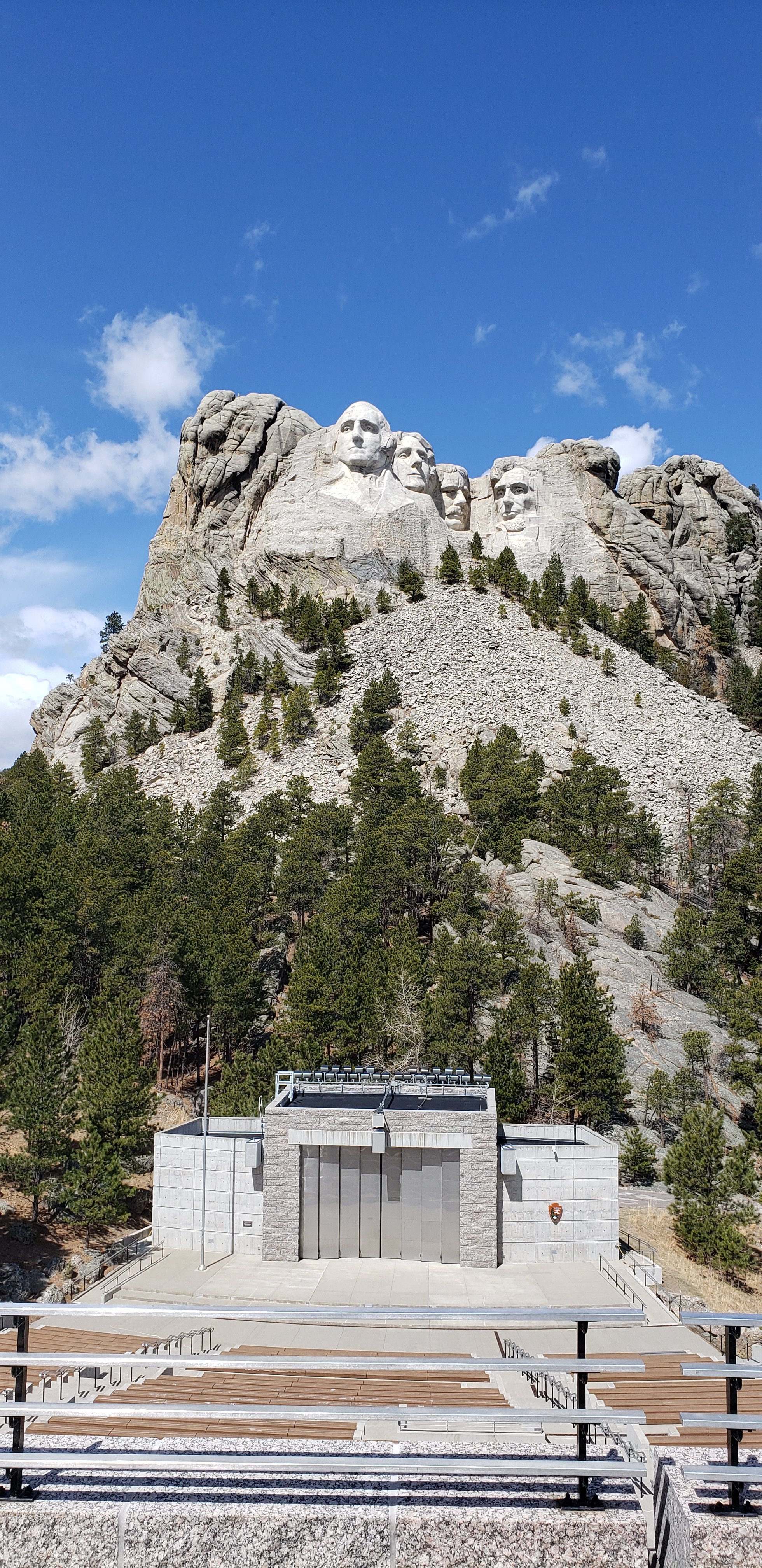 In the Black Hills, George Washington, Thomas Jefferson, Theodore Roosevelt and Abraham Lincoln are carved high in granite 5,550 feet tall.