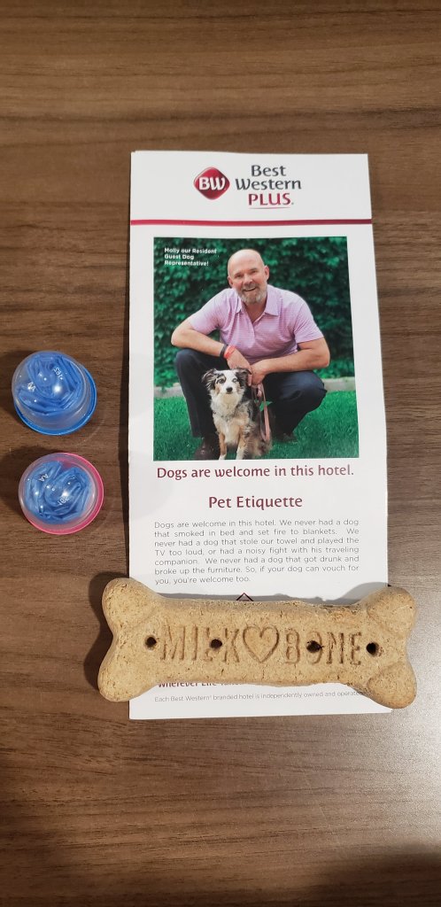 Cappy was very appreciative of all of the pet amenities, too. He was given a goodie bag with a treat & they had a nice green area for him so he didn’t have to potty in the snow!