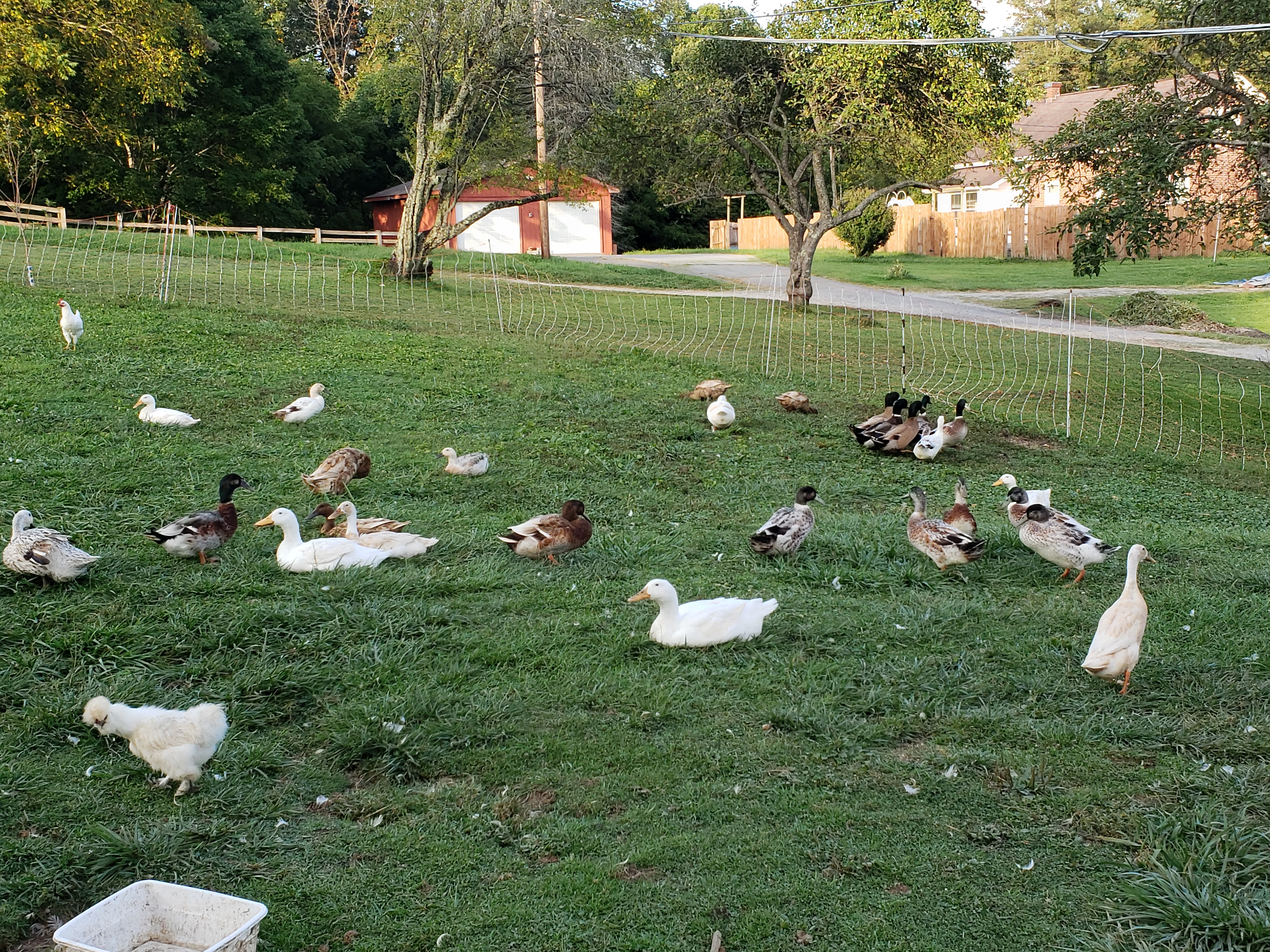 So now I find myself house/pet sitting in rural Bluefield, WV. All I can say is that it has been an experience. I have been sitting for: 1 dog, 3 cats, 1 bearded dragon, 35 ducks, and 12 chickens! Mom has helped me getting all the birds into their coops in the evenings and I couldn’t have done it without her.
