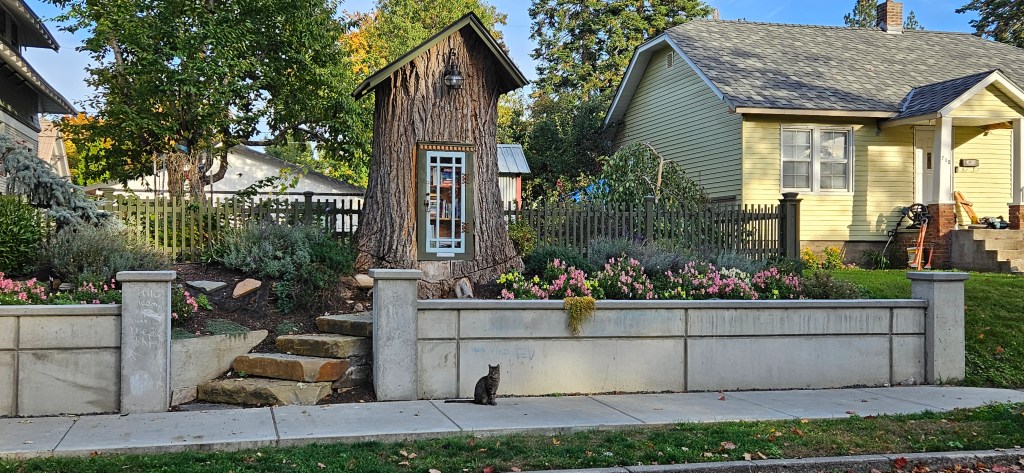 While traveling, I always make a point to visit libraries. C’oeur d’Alene has one of my new favorites. It is in a 110 year old tree stump!