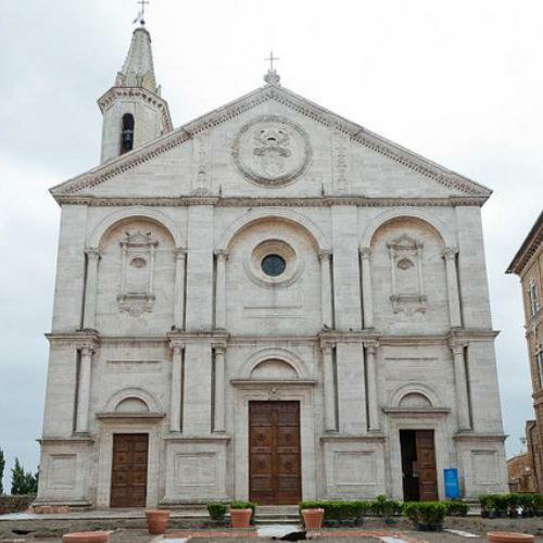 The cathedral was built on the remains of the Romanesque church of St. Mary (still visible in the crypt). The façade is typical of the Renaissance & is divided into three parts by arched columns. On the left wing there is an octagonal, cuspidate bell tower that is reminiscent of the ones Pope Pius II saw in Germany. Works of art in the cathedral include five altar paintings from the Sienese School. There is also a baptistery next to the apse of the church.